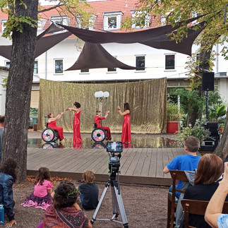 Ein wunderschönes Sommerfest der orientalischen Tanzschule Shimmy. nach drei Jahren Pause. Premiere in diesem Jahr war ein orientalischer Tanz der inklusiven Tanzgruppe von Rollis und Fussis, unserer Tanzgruppe „Abgefahren“. Wir waren in diesem Jahr das erste Mal dabei.